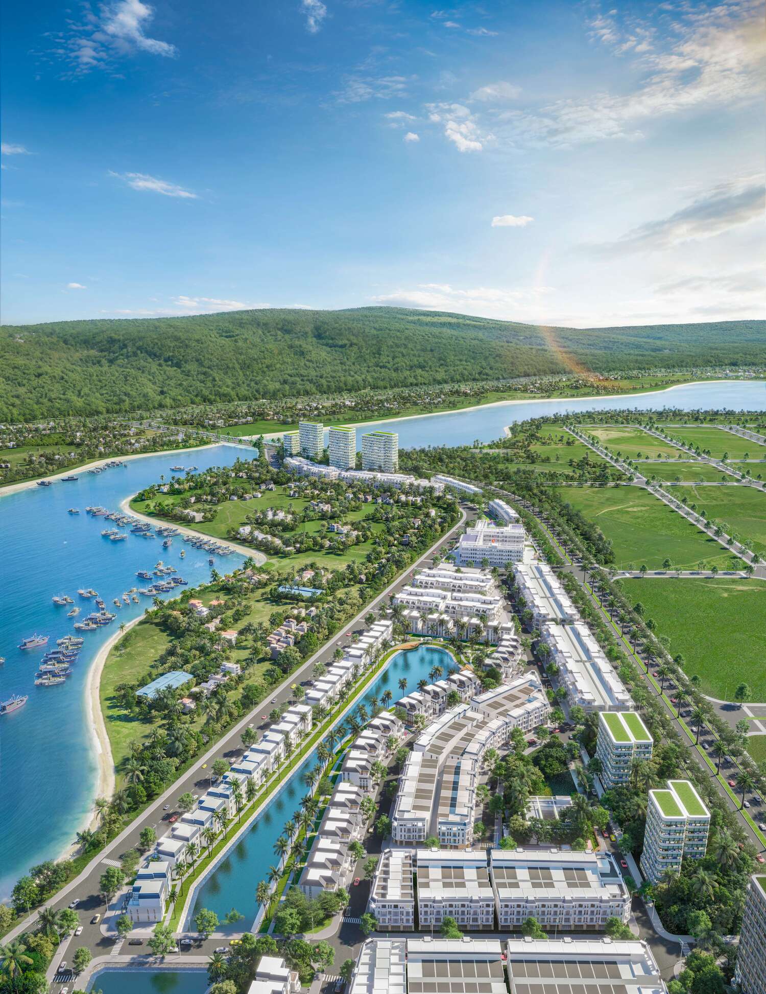 Bao gồm công viên, trường học, bệnh viện, quảng trường trung tâm và khu vui chơi, mang lại cuộc sống tiện nghi, hiện đại.